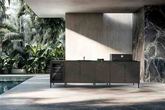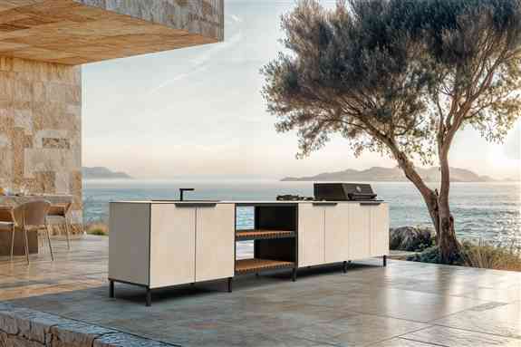 Q-boo is a modular outdoor kitchen system designed for year-round use in outdoor environments. Made in Europe, all units are built from black stainless steel and fitted with professional-grade components. Dekton — a weatherproof, architectural surface — is used for countertops and cladding, depending on the collection.The system includes a range of predefined modules — cooking, sink, fridge, storage — so you can build a layout that fits your needs. Available in both standard and custom configurations.